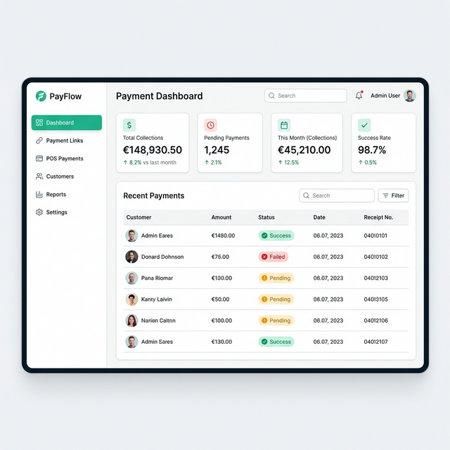 Yönetim panelinden tek tıkla ödeme linki oluşturun. Sabit tutarlı (fixed) veya müşterinin tutarı girdiği serbest (free) link tipleri desteklenir. Oluşturulan link, WhatsApp veya Email ile müşteriye anında gönderilir. Müşteri linke tıklayarak güvenli ödeme formunda kart bilgilerini girerek ödeme yapar. Son kullanma tarihi ve maksimum kullanım sayısı belirlenebilir.