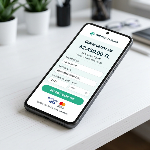 Müşteri, 3D Secure korumalı formda kart bilgilerini girerek ödeme yapar.