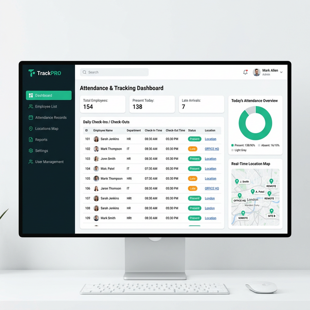 Yönetici panelinden tüm giriş/çıkış kayıtlarını, mesai saatlerini ve konum verilerini raporlayın.