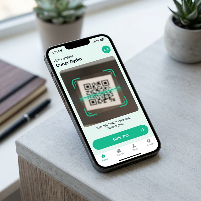 Personel, mobil uygulama üzerinden işyerine özel QR kodu okutarak giriş ve çıkış kaydı oluşturur. Sistem, QR kod doğruluğunu anlık olarak kontrol eder ve kaydı sunucuya gönderir. Yöneticiler, her giriş/çıkış için tarih, saat ve personel bilgilerini detaylı olarak görebilir.